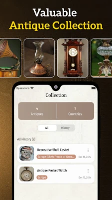 Rivela i segreti dei tuoi oggetti d'antiquariato e curiosità. L'app ti guida in un viaggio affascinante per scoprire la storia, il valore e le origini di ogni tesoro nascosto. Esplora il passato con facilità e approfondisci ogni dettaglio.