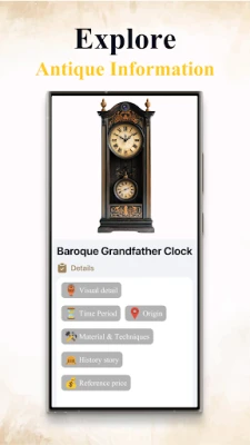 Basta catturare un'immagine o caricarla dalla tua galleria: il sistema di riconoscimento di Antique ID si occuperà del resto. Dagli arredi d'epoca alle porcellane pregiate, dalle monete storiche ai francobolli rari e alle banconote da collezione, l'applicazione discerne una vasta gamma di oggetti con precisione sorprendente. Ma Antique ID va oltre la semplice etichettatura: ti immerge nel passato, fornendoti dati dettagliati su origine, epoca, significato culturale e metodi di fabbricazione. Ti sei mai chiesto il valore del tuo tesoro? Il nostro motore di valutazione integrato ti offre una stima di mercato in tempo reale, basata su dati provenienti da aste e registri di vendita, essenziale sia per la vendita che per l'assicurazione. E per i dettagli nascosti, la funzionalità di rilevamento di firme e marchi ti aiuterà a ricondurre l'oggetto a specifici artigiani o periodi storici.