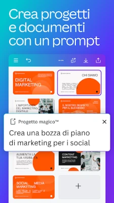 Sblocca il tuo potenziale creativo con Canva, la piattaforma definitiva che trasforma ogni idea in realtà visiva. Che tu stia ideando un logo accattivante, curando un feed social impeccabile, preparando una presentazione dinamica o sviluppando un curriculum vitae di impatto, Canva offre un'interfaccia intuitiva e strumenti potenti per tutti. Dimentica la complessità del design; con Canva, creare collage fotografici memorabili, presentazioni professionali e video coinvolgenti è sorprendentemente semplice e accessibile, permettendoti di esprimere la tua visione senza limiti.