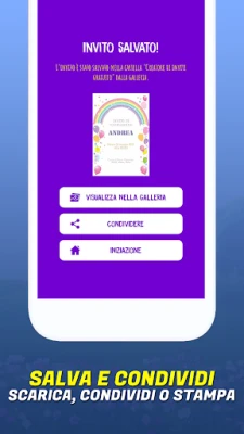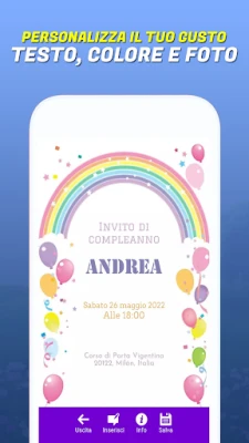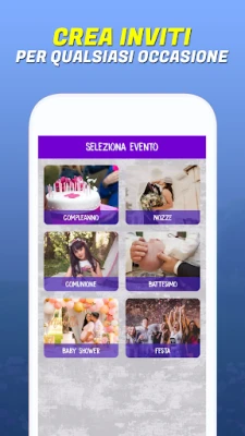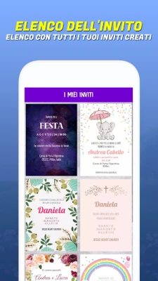 Crea biglietti d'invito è l'app ideale per realizzare inviti gratuiti di alta qualità per ogni tipo di evento. Che si tratti di compleanni, matrimoni, comunioni o baby shower, scopri design unici e personalizzabili per rendere speciali le tue occasioni.
