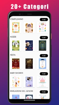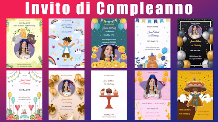 Crea inviti unici e personalizzati per compleanni, matrimoni e altro con il nostro creatore di biglietti GRATUITO. Scegli tra oltre 1000 modelli e 20 categorie, personalizza facilmente e condividi online. L'app perfetta per ogni evento.
