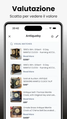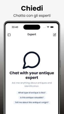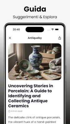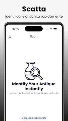 Identificatore Antico: Antiqueby è lo strumento definitivo per appassionati di antichità. Identifica, scopri e valuta oggetti antichi con un semplice scatto, ottenendo dettagli su storia, origine e valore potenziale. Trasforma ogni ritrovamento in un tesoro di conoscenza.