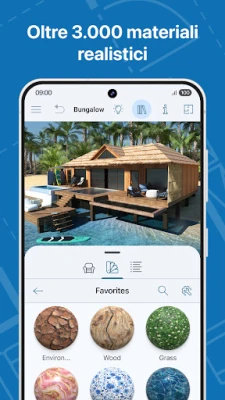 Live Home 3D trascende il semplice concetto di applicazione, offrendo una soluzione olistica tanto per gli architetti esperti quanto per gli entusiasti del 'fai da te'. Dalla creazione di planimetrie meticolose alla personalizzazione di ogni singolo ambiente, la libertà creativa è illimitata. Trasforma le tue stanze con una libreria di oltre 3.000 texture e materiali, o cattura l'essenza di un elemento reale importando immagini. Ma la tua creatività non si ferma alle pareti: progetta giardini lussureggianti e paesaggi mozzafiato, visualizzando ogni dettaglio del tuo spazio esterno. Con i tour immersivi in 3D, potrai passeggiare virtualmente tra le tue creazioni, verificando ogni angolo e prospettiva prima che diventino realtà.