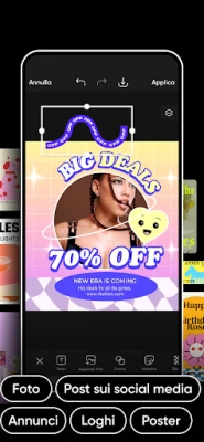 Immergiti nell'era dell'intelligenza artificiale con le funzionalità rivoluzionarie di Picsart. Con Rimuovi Sfondo, trasforma istantaneamente le tue immagini in fotografie di prodotto impeccabili, ideali per e-commerce e professionisti. L'IA avanzata ti permette di eliminare oggetti indesiderati, migliorare la qualità delle foto e applicare filtri stilizzati che reinventano ogni scatto. Dalla generazione di testi unici con AI Scrittore alla creazione di arte visiva da semplici descrizioni con AI Genera Immagini, fino all'espansione creativa dei tuoi confini fotografici con AI Espandi, le possibilità sono infinite. Non solo foto: l'editor video integrato di Picsart ti consente di montare clip coinvolgenti con musica, effetti di tendenza e ritocchi, perfetti per TikTok, reel e Instastories.
