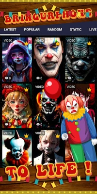 Dai vita al tuo smartphone Android con uno spaventoso sfondo animato da pagliaccio. Scopri un'esperienza visiva unica che trasforma il tuo dispositivo. Questa app, parte di una ricca collezione di sfondi live, offre personalizzazione per il tuo telefono.