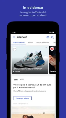 Immagina di accedere a sconti incredibili, con risparmi che possono arrivare fino al 50% su un vastissimo assortimento di brand rinomati, sia online che nei tuoi negozi preferiti. Non solo: con UNiDAYS, puoi partecipare a concorsi entusiasmanti per vincere super premi e ricevere omaggi unici. Inoltre, arricchisci la tua giornata con consigli preziosi e contenuti divertenti, pensati per supportare ogni aspetto della tua vita universitaria, dalla mattina presto fino allo spuntino di mezzanotte.